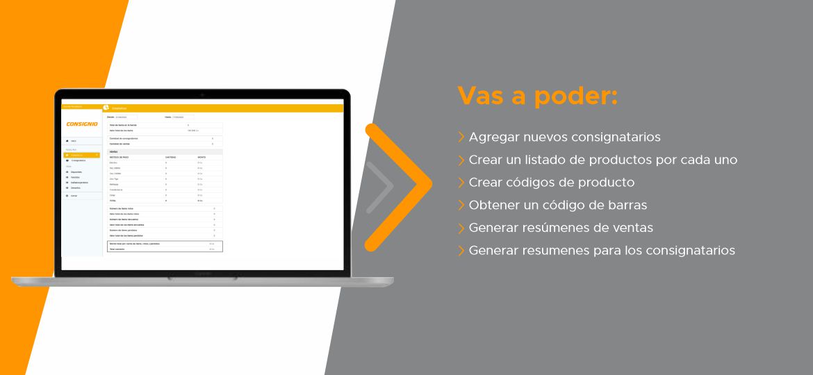 Con Consignio, podés identificar productos de diferentes personas, definir precios y adminsitrar tus ventas y comisiones.